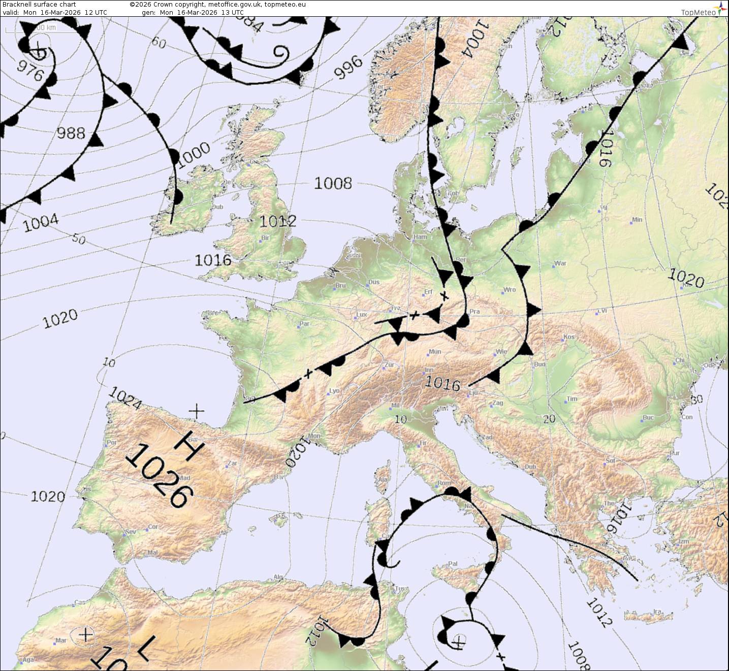 Analyses météo du 16/03/2026 , en partenariat avec TopMeteo